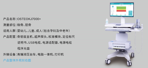 OSTEOKJ7000+超聲骨密度儀是南京科進(jìn)實(shí)業(yè)有限公司推出的一款高性價(jià)比、覆蓋全年齡段、適用于橈骨/脛骨骨質(zhì)檢測的產(chǎn)品,用于測量人體骨質(zhì)狀況。OSTEOKJ7000+適用于各類醫(yī)療與體檢機(jī)構(gòu),不論對中老年人骨質(zhì)疏松癥還是青少年兒童骨骼發(fā)育狀況,都能提供詳細(xì)的臨床參考數(shù)據(jù)。