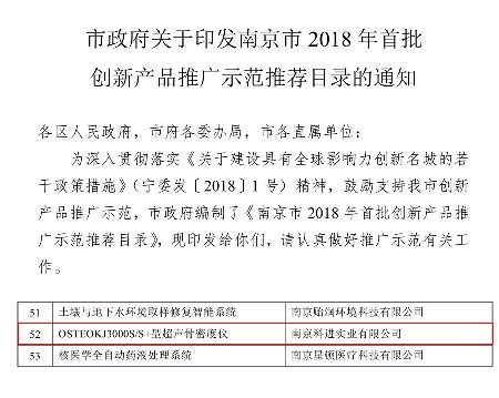 科進(jìn)3000S/S+型超聲骨密度儀入選《南京市2018首批創(chuàng)新產(chǎn)品推廣示范推薦目錄》